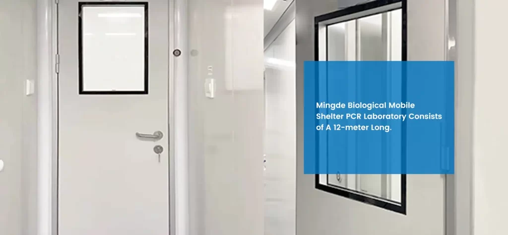 Mingde biological mobile shelter PCR laboratory consists of a 12-meter long, designed in strict accordance with the level of secondary biosafety laboratory, with independent reagent preparation, sample preparation, nucleic acid amplification and product analysis in four areas, laboratory airflow, The flow of people and logistics comply with the regulations of single flow and meet the national biosafety requirements.